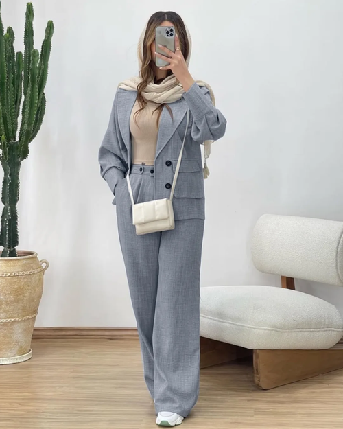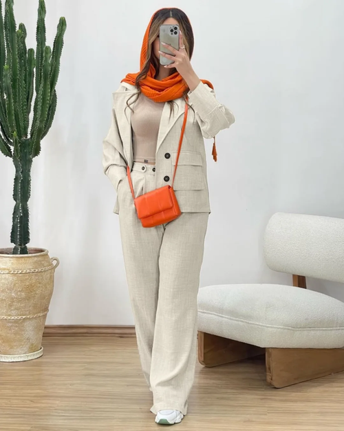 ست کت و شلوار فوق العاده شیک و مینیمال 😍 🪡کت و شلوار رها 🪡جنس : شانتون 🪡قد مانتو : حدود 75 🪡قد شلوار : حدود 105 🪡سایز : 38 تا 48 💸کلیه عکس ها ژورنالی می باشد و‌امکان چند درجه اختلاف رنگ وجود دارد