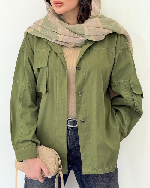 همچنین بر روی یکی از آستین ها یک جیب پاکتی به همراه سرجیب قرار داده شده که علاوه بر زیبایی بسیار کاربردی نیز می باشد.