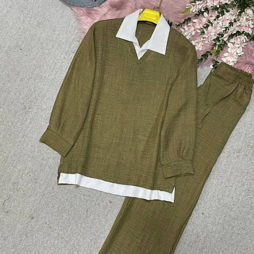 ✨تونیک شلوار کد 208 -جنس : شانتون -رنگبندی : پسته‌ای, زیتونی, سبز, سماقی, کاربنی, کرم, کنفی, مشکی, نسکافه‌ای -سایزها : فری از 38 تا 46 -قدتونیک حدود 75 -قداستین 55 -دوربازو40 ، دورسینه 112 -قدشلوار103 ، دورران 66 -دمپا 54 ، چاک دمپای شلوار 15 -قیمت : 624 خرید از سایت‌ pushakpapiun.ir