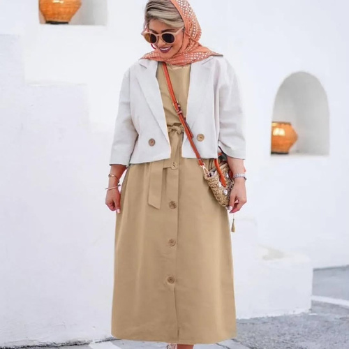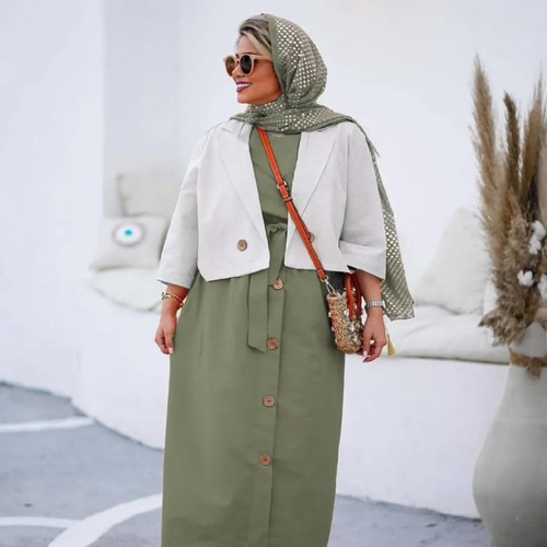 دو‌تیکه کت و سارافن دکمه چوبی کد 247 🔺سایزبندی: فری سایز مناسب تا 48 🔶جنس : لینن خارجی درجه یک 🔶قد کت حدود 55 🔶قد سارافن حدود 130 🔶سارافن استین حلقه ای هست 🔶همراه کمربند 🔶دکمه ها نما هست 🔶تنخور عالی - تضمین کیفیت ❌قیمت حراج ست 750 پست 45